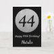 Happy 44th Birthday Black and Silver Glitter Card with personalised name. For further customisation, please click the "Customise it" button and use our design tool to modify this template.