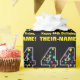 This fun birthday themed wrapping paper design features a large number "44", filled with a pattern of decorative star shapes having various sizes and colours. It also features the message "Happy 44th Birthday,", and a personalised name. The background is coloured black. Wrapping paper like this might be a fun way of wrapping a birthday present or gift being given to somebody who is celebrating their 44th birthday. [~Z0000429]