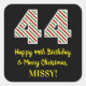 Happy 44th Birthday & Merry Christmas, Custom Name Square Sticker