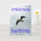 Flying Seagull in a cloudy sky with the bird’s wings out spread and a Birthday greeting.