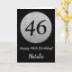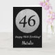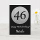 Happy 46th Birthday Black and Silver Glitter Card with personalised name. For further customisation, please click the "Customise it" button and use our design tool to modify this template.
