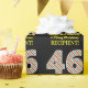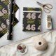 This fun and simple Christmas themed and birthday themed December 25th birthday wrapping paper design features a large number "46" with a green/white/red stripes pattern, along with the message "Happy 46th Birthday & Merry Christmas,", and a customisable name. The background is coloured black. Wrapping paper like this might be a fun way to wrap presents or gifts that are being given to somebody whose forty sixth birthday falls on December 25th (Christmas Day). [~Z0000406]