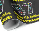 This fun birthday themed wrapping paper design features a large number "47" filled with a pattern of star shapes of various sizes and colours, along with the message "Happy 47th Birthday,", and a personalised name. The background is coloured black. Birthday themed wrapping paper like this might be a fun way to wrap a gift or present being given to somebody who is celebrating their forty seventh birthday. [~Z0000429]