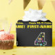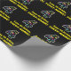 This fun birthday-themed wrapping paper design features a large number "4", filled with a pattern of decorative star shapes of various sizes and colours. It also features the message "Happy 4th Birthday,", and a customisable name. The background is coloured black. Wrapping paper like this might be a fun way of wrapping a birthday present or gift being given to somebody who is celebrating their 4th birthday. [~Z0000429]