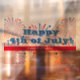 Happy 4th of July fireworks party custom Window Cling sign. Add your own text. Cheerful design with bold typography template. Personalised decorations for festive outdoor or indoor party. Red white and blue stars. Great for shop, store, business, company office, club and other places. Sticks to glass doors and windows. Add your own opening ours or message.
