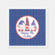 Cute illustration of garden gnomes in the theme of red, white, and blue for the Fourth of July. Equipped with an American flag, firework rocket, and cute heart.