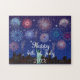 Unique and beautiful fireworks in red, white and blue with the Statue of Liberty in a silhouette of New York City to celebrate Independence Day. Happy 4th of July!