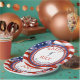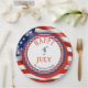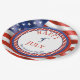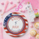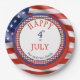 Paper plate featuring a design inspired by barbecue and the American flag. Nice for 4th of July celebrations or other festivities with a patriotic theme.