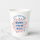 Happy 4th of July party fireworks custom Paper Cups. Disposable party supplies with red white and blue colours. Double sided print. Stars and stripes of America. Also fun for wedding, BBQ, Birthday, family reunion and other celebrations.