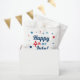 Stylish patriotic Fourth of July holiday custom favour bag design features an "Happy 4th of July" quote script typography text design in red, white, blue, and navy blue colours with star accents. Personalise the navy blue text with your family's name or other preferred wording.