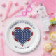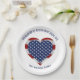 American Flag Colours Heart with Stars and Stripes Patriotic Paper Plate with custom text: Happy 4th of July, you can change or delete all text