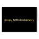 Elegant Gold text Happy 50th Anniversary greeting card on black background.
