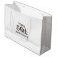 This gift bag feature the words "Happy 50th Anniversary" in a unique print font with gold letters black outline. All gift bags are made with premium quality paper for extra durability and your choice of matte or glossy finish available in 3 additional sizes great for baby showers, weddings or anniversaries.