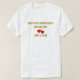 Happy 50th Anniversary t-shirt on a white background with two red hearts. Customers can change the names and dates on the front and back of the hat.