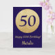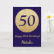 Happy 50th Birthday Navy Blue and Gold Glitter Card with personalised name. For further customisation, please click the "Customise it" button and use our design tool to modify this template.