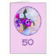 A simple but elegant 50th birthday card with a flower painting. A painting of a vase of flowers is framed in daisies. The whole is on a delicate pink background. The inside message can be changed to your requirements.