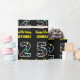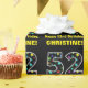 This fun birthday-themed wrapping paper design features a large number "52", filled with a pattern of star shapes having various sizes and colours. It also features the message "Happy 52nd Birthday,", and a personalised name. The background is coloured black. Birthday themed wrapping paper like this might be used when giving a gift or present in celebration of somebody’s fifty second birthday. [~Z0000429]