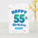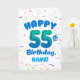 Celebrate their 55th birthday with a bright, cheerful, and personalizable birthday card! This custom name birthday card features a bold number fifty-five balloon and colorful confetti.