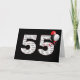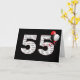 Bold black and white happy and number 55 text on black with a party balloon bouquet.