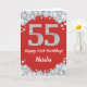 Happy 55th Birthday Red and Silver Glitter Card with personalised name. For further customisation, please click the "Customise it" button and use our design tool to modify this template.