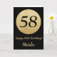 Happy 58th Birthday Black and Gold Glitter Card with personalised name. For further customisation, please click the "Customise it" button and use our design tool to modify this template.