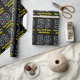 This fun birthday-themed wrapping paper design features a large number "59" filled with a pattern of decorative star shapes having various sizes and colours, along with the message "Happy 59th Birthday,", and an editable name. The background is coloured black. Birthday themed wrapping paper like this might be a fun way to wrap a gift or present being given to celebrate somebody’s fifty ninth birthday. [~Z0000429]
