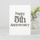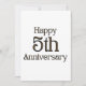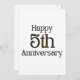 This invitation feature the words "Happy 5th Anniversary" in a unique print font with gold letters black outline. Printed on a classic, all around paper 17.5 pt thickness with an uncoated matte finish with an eggshell texture made and printed in the USA with 5 Years Of Love printed on the back.