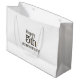 This gift bag feature the words "Happy 5th Anniversary" in a unique print font with gold letters black outline. All gift bags are made with premium quality paper for extra durability and your choice of matte or glossy finish available in 3 additional sizes great for baby showers, weddings or anniversaries.