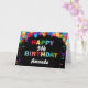 Happy 5th Birthday Colourful Balloons Confetti Black Card with personalised name. For further customisation, please click the "Customise it" button and use our design tool to modify this template.