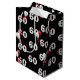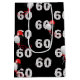 60th birthday party with bold black and white happy and number 60 text on black with party balloon bouquet.