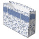 Happy 60th Birthday Party Pattern Blue and White Large Gift Bag