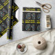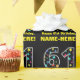 This fun birthday themed wrapping paper design features a large number "61" filled with a pattern of decorative star shapes of various sizes and colours, along with the message "Happy 61st Birthday,", and an editable name. The background is coloured black. Fun wrapping paper like this might be used when wrapping presents being given to somebody in celebration of their sixty first birthday. [~Z0000429]