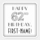 HAPPY 62ND BIRTHDAY, Art Deco Style, Custom Name Square Sticker