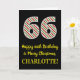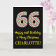 The front of this fun and simple Christmas-themed and birthday-themed December 25th birthday greeting card design features a large number "66" with a red/white/green stripes pattern, along with the message "Happy 66th Birthday & Merry Christmas,", and a personalised name. The background of the front is coloured black. The inside features a customised birthday greeting message, or could perhaps be cleared and left blank if a message is to be written by hand instead. A personalised birthday card like this might be a fun way to send a message in celebration of somebody’s sixty sixth birthday that also falls on December 25th (Christmas Day). [~Z0000405]