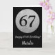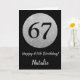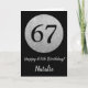 Happy 67th Birthday Black and Silver Glitter Card with personalized name. For further customization, please click the "Customize it" button and use our design tool to modify this template.