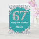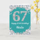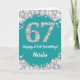 Happy 67th Birthday Teal and Silver Glitter Card