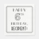 This elegant 1920s-1930s era inspired art deco look birthday paper napkin design has the message “HAPPY 6TH BIRTHDAY,”, along with a customisable recipient name. The number “6TH” has a fancy geometric lined styling, and there is also a lined border around the birthday greeting message. Birthday themed paper napkins like this might be fun to use at a birthday party being held for somebody who is celebrating their sixth birthday. [~Z0000644]