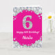 Happy 6th Birthday Hot Pink and Silver Glitter Card with personalised name. For further customisation, please click the "Customise it" button and use our design tool to modify this template.