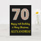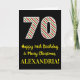 The front of this fun and simple Christmas themed and birthday themed December 25th birthday greeting card design features a large number "70" with a green/white/red stripes pattern, along with the message "Happy 70th Birthday & Merry Christmas,", and a custom name. The background of the front is colored black. The inside features a personalized birthday greeting message, or could perhaps be cleared and left blank if a message is to be written by hand instead. A personalized birthday card like this might be a fun way to send birthday wishes to somebody who is celebrating their seventieth birthday and who was also born on December 25th (Christmas Day). [~Z0000405]