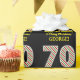 This simple and fun Christmas themed and birthday themed December 25th birthday wrapping paper design features a large number "70" with a red, white, and green stripes pattern, along with the message "Happy 70th Birthday & Merry Christmas,", and a personalized name. The background is colored black. Wrapping paper like this might be used when wrapping presents that are being given to somebody whose seventieth birthday falls on December 25th (Christmas Day). [~Z0000406]