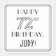 This elegant 1920s/1930s era inspired art deco look birthday themed square sticker design has the message “HAPPY 72ND BIRTHDAY,”, plus a custom recipient name. The number “72ND” has a fancy geometric lined styling, and there is also a lined border around the birthday greeting message. Stickers like these might be used when celebrating somebody’s seventy-second birthday. [~Z0000647]