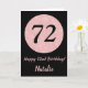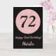 Happy 72nd Birthday Black and Rose Pink Gold Card