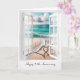 Pair of beach hearts in sand with ocean surf scene viewed through an open window for 75th anniversary.