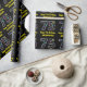This fun birthday-themed wrapping paper design features a large number "75" filled with a pattern of decorative star shapes of various sizes and colours, along with the message "Happy 75th Birthday,", and a personalised name. The background is coloured black. Fun wrapping paper like this might be used when wrapping presents being given to somebody in celebration of their seventy fifth birthday. [~Z0000429]