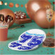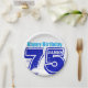Electric Blue turquoise "Happy Birthday" in relief (not customisable) + first name and large blue 75 to customise. Design on paper plate with white background. Matching paper napkin and more...