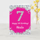 Happy 7th Birthday Hot Pink and Silver Glitter Card with personalised name. For further customisation, please click the "Customise it" button and use our design tool to modify this template.