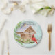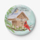 This paper plate features a cozy winter birdhouse decorated with a birthday banner, as a tufted titmouse and a cardinal stop by. Soft seasonal charm makes it a lovely addition to an 80th birthday celebration.