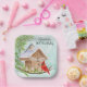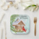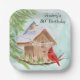 This paper plate features a cozy winter birdhouse decorated with a birthday banner, as a tufted titmouse and a cardinal stop by. Soft seasonal charm makes it a lovely addition to an 80th birthday celebration.
