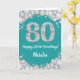 Happy 80th Birthday Teal Turquoise Aqua and Silver Glitter Card with personalised name. For further customisation, please click the "Customise it" button and use our design tool to modify this template.