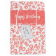 This over-the-hill numeric design is a coral and white random number pattern with milestone number 80 repeated in varied sizes and angles in an all-over print. There is a printed ribbon banner and gift tag with text templates so you can easily personalise them with your own words, name, initial, or monogram.